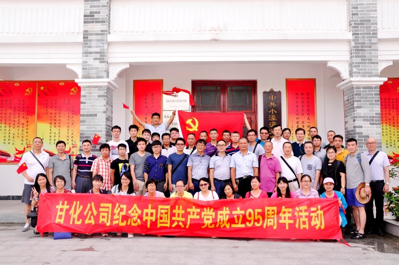 为纪念中国共产党建党95周年,并进行爱国爱党爱岗教育,2016年7月2日上午,甘化公司党委组织本部和子公司全体党员到珠海斗门小濠涌党史教育基地参观学习,接受革命教育,重温入党誓词,以庄严神圣的方式庆祝党的生日。