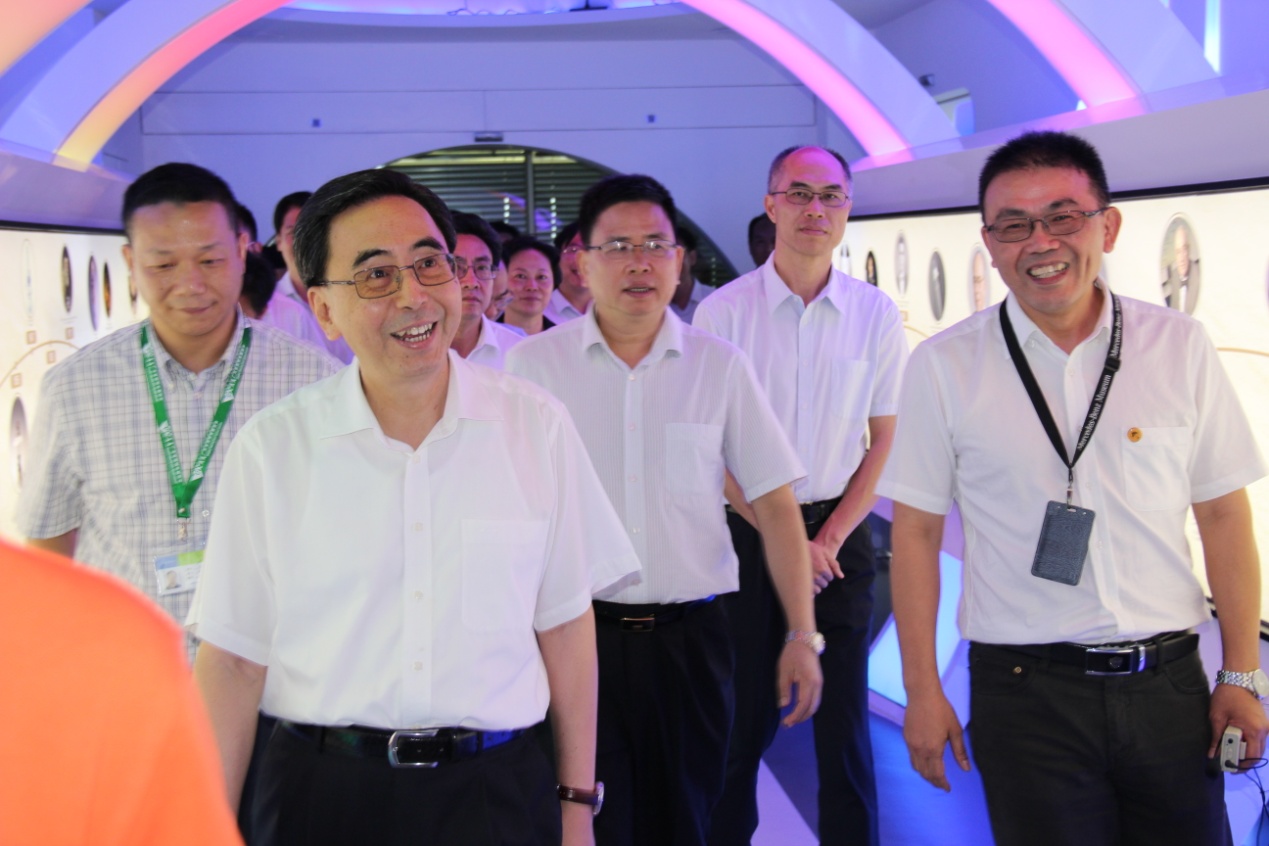朱小丹省长一行参观了德力光电的外延片、展厅及芯片生产车间并认真聆听汇报。对于德力光电的规模、庞大雄厚的研发能力、产品的优异性能、创新能力等等。朱小丹省长给予充分的肯定。