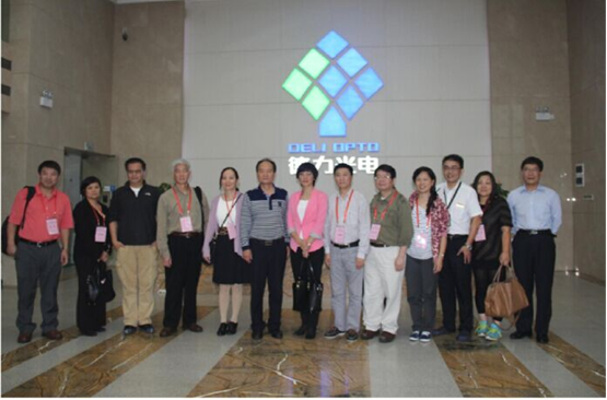 2015年11月10日下午,美国华盛顿旅美中国大专院校校友联合会访问团到德力光电进行调研工作。访问团在德力光电副总经理叶国光陪同下,先后参观了外延片、芯片生产车间及展厅,叶国光副总经理进行了详细的讲解。最后,访问团与叶国光副总经理在大堂亲切合影留念。